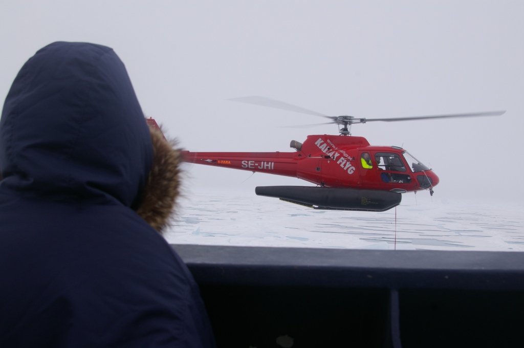 Elizabeth watches as the helicopter searches off Oden's Bow.